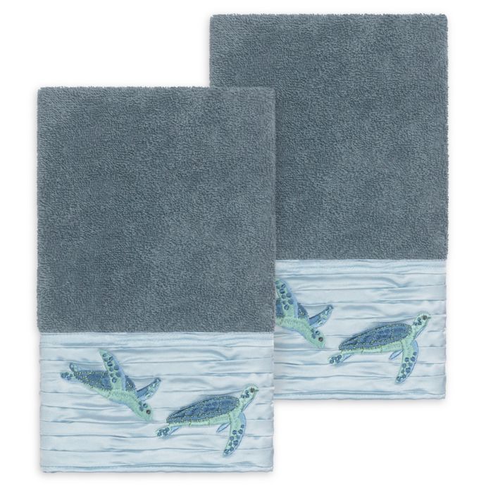 Linum Home Textiles Mia Sea Turtle Hand Towels (Set of 2) Bed Bath